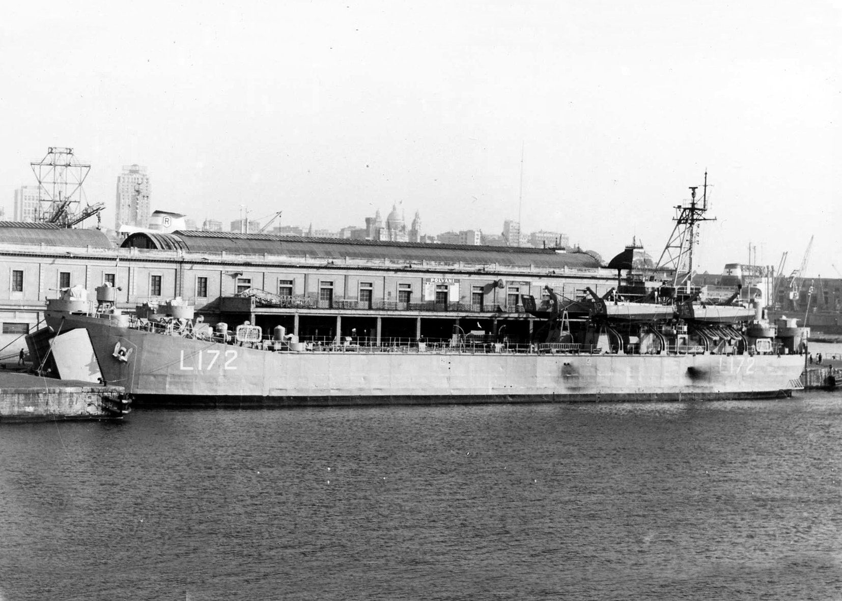 301k | HS Lesbos (L-172) moored pierside at Genoa, Italy, 28 February 1973. | Photo by Carlo Martinelli | |