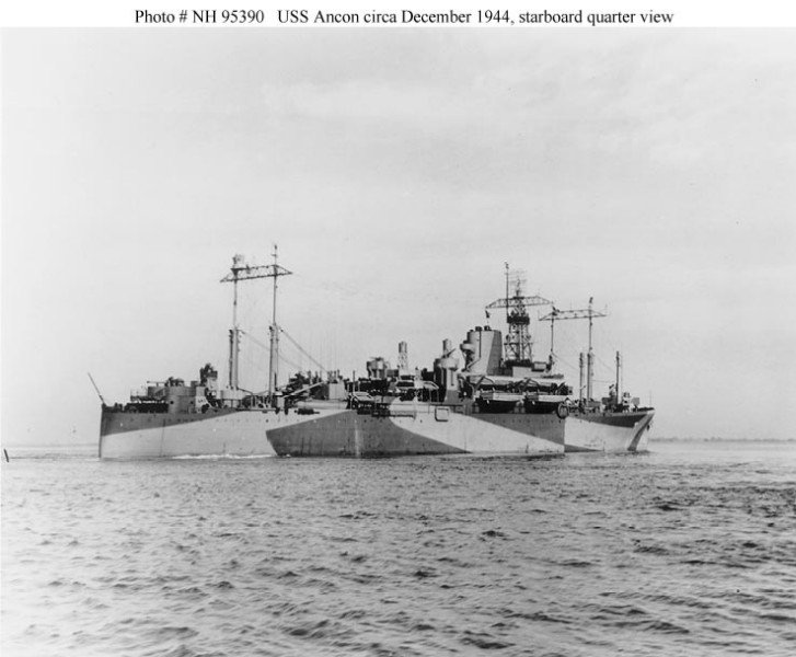 204k | USS Ancon (AGC-4) at anchor, date and location unknown. | Aryeh Wetherhorn | |