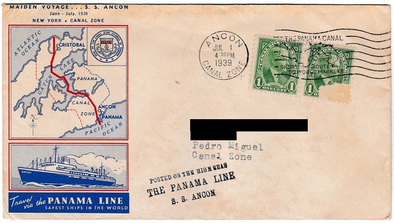 169k | SS Ancon Maiden Voyage postal cover, 1 July 1939. | Steve Hatchett from the collection of his father George Hatchett |