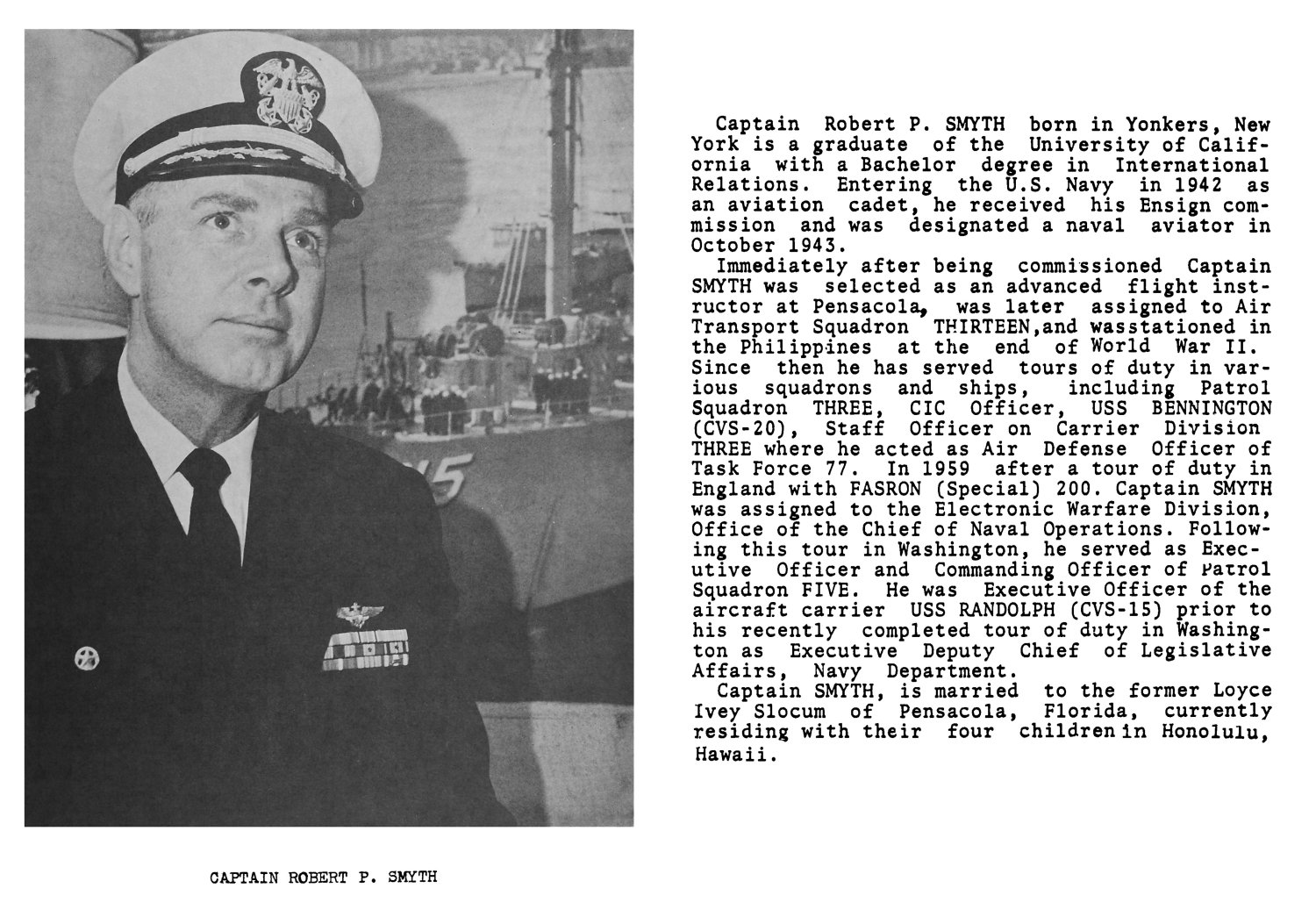 | 19 | CAPT. Smyth, Robert Peter, USN | 20 August 1967 - 10 September 1968 | USS Tanner (AGS-15) |