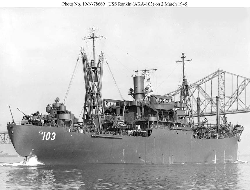 123k | USS Rankin (AKA-103) under way date and location unknown. US Navy photo by David Hodurski. |