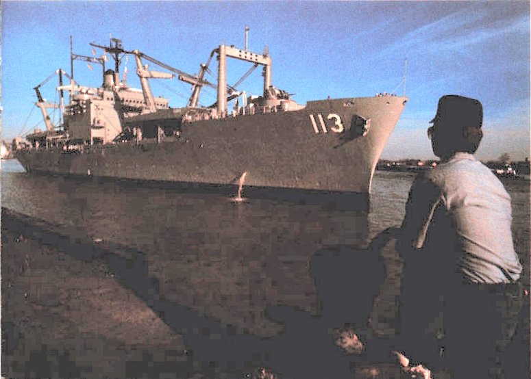 466k | USS Charleston (LKA-113) moored pierside at Palma de Mallorca, Spain during a routine port visit, circa 1980s. | Photo by José Antonio Rodríguez Carreño | |
