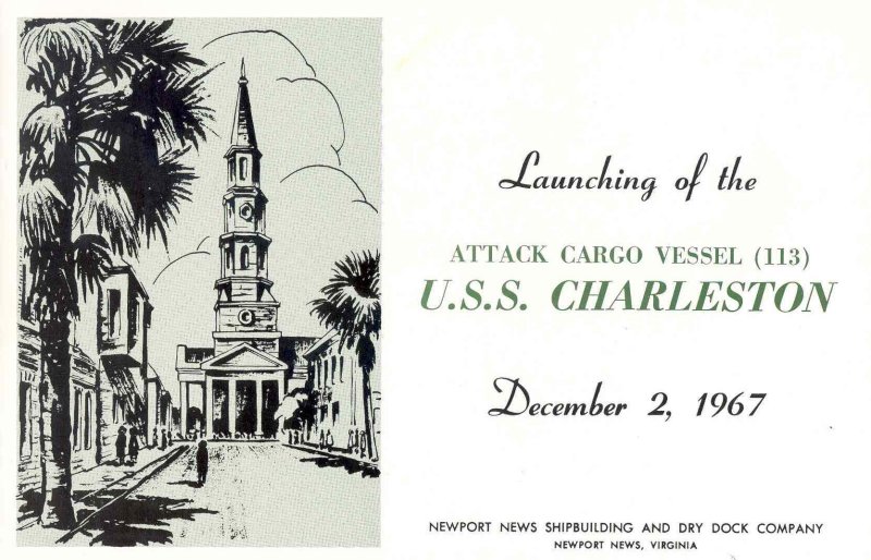 92k | Invitation to the launching ceremony of USS Charleston (AKA-113) at Newport News Shipbuilding and Dry Dock Co., Newport News, VA. on 2 December 1967. | S. Dale Hargrave | |