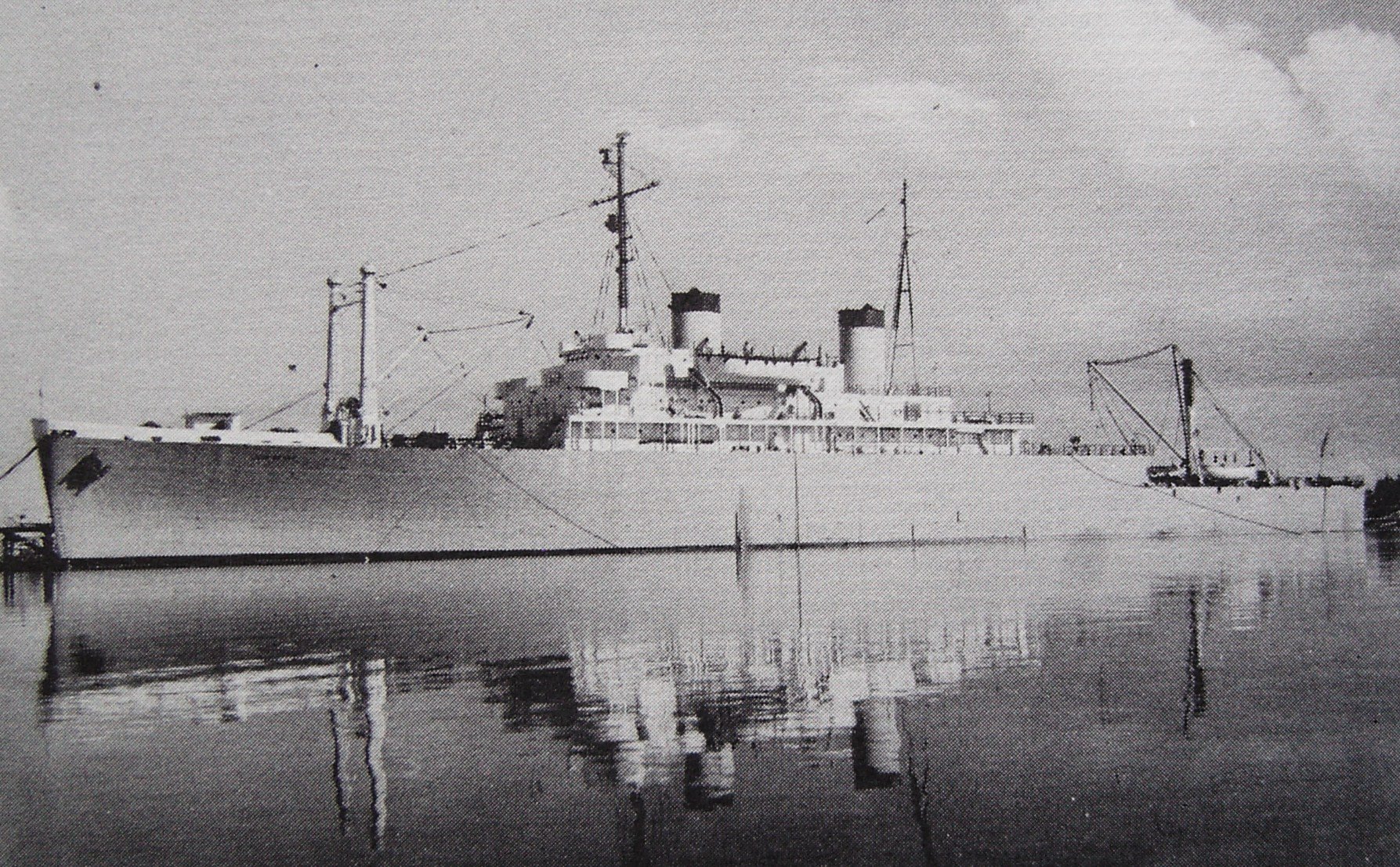 USS Doyen (APA-1), newly completed underway off the California coast, 7 or 17 June 1943. Designed by the Maritime Commission without direct naval supervision, she was not sufficiently stable, and had to be modified before entering service. Text and US Navy photo from "U.S. Amphibious Ships and Craft: An Illustrated Design History" by Norman Friedman. |