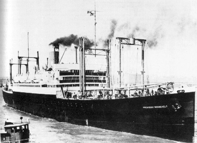 122k | SS President Roosevelt underway in the livery of the United States Lines, date and location unknown. Courtesy MaritimeDigital Archive. | Robert Hurst | |