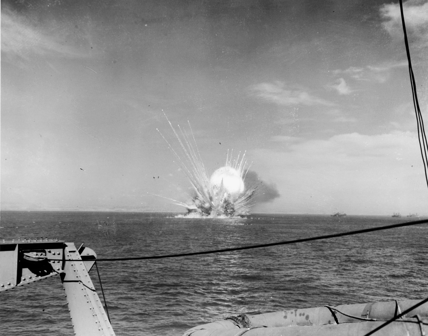 239k | USS Joseph T. Dickman (APA-13) had weighted anchor and was about 1,000 yards away from the Liberty ship SS Robert Rowan when she blew