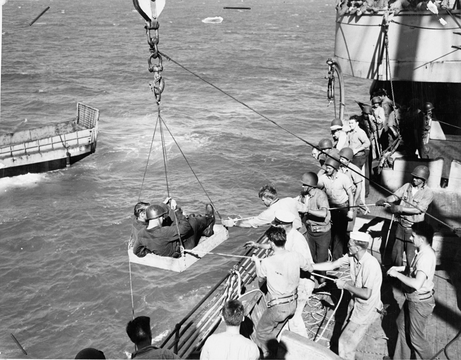 while wounded soldiers are brought back from the beach to the ship, 11 July 1943 between 1220 and 1700 hours.