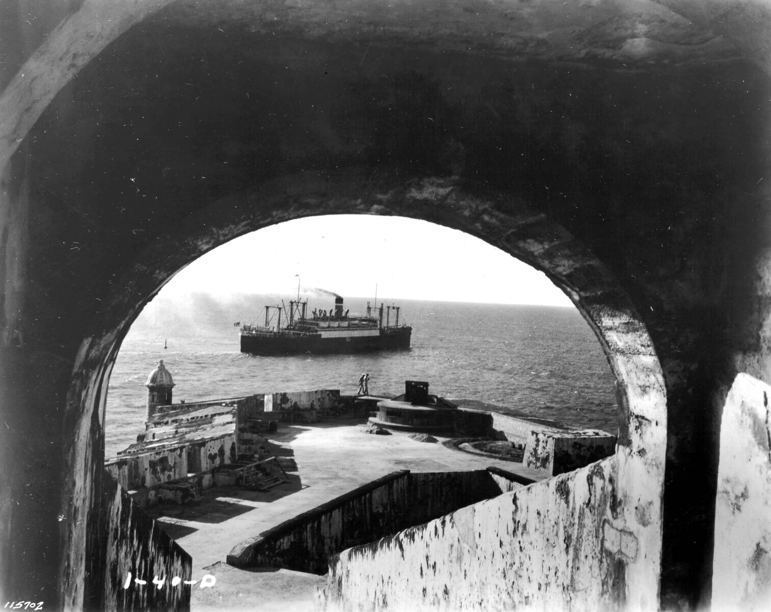 366k | USAT American Legion departing San Juan, Puerto Rico as seen from El Morro Castle, circa 1940. Photo from the collections of the US Army Center of Military History | Robert Hurst | |