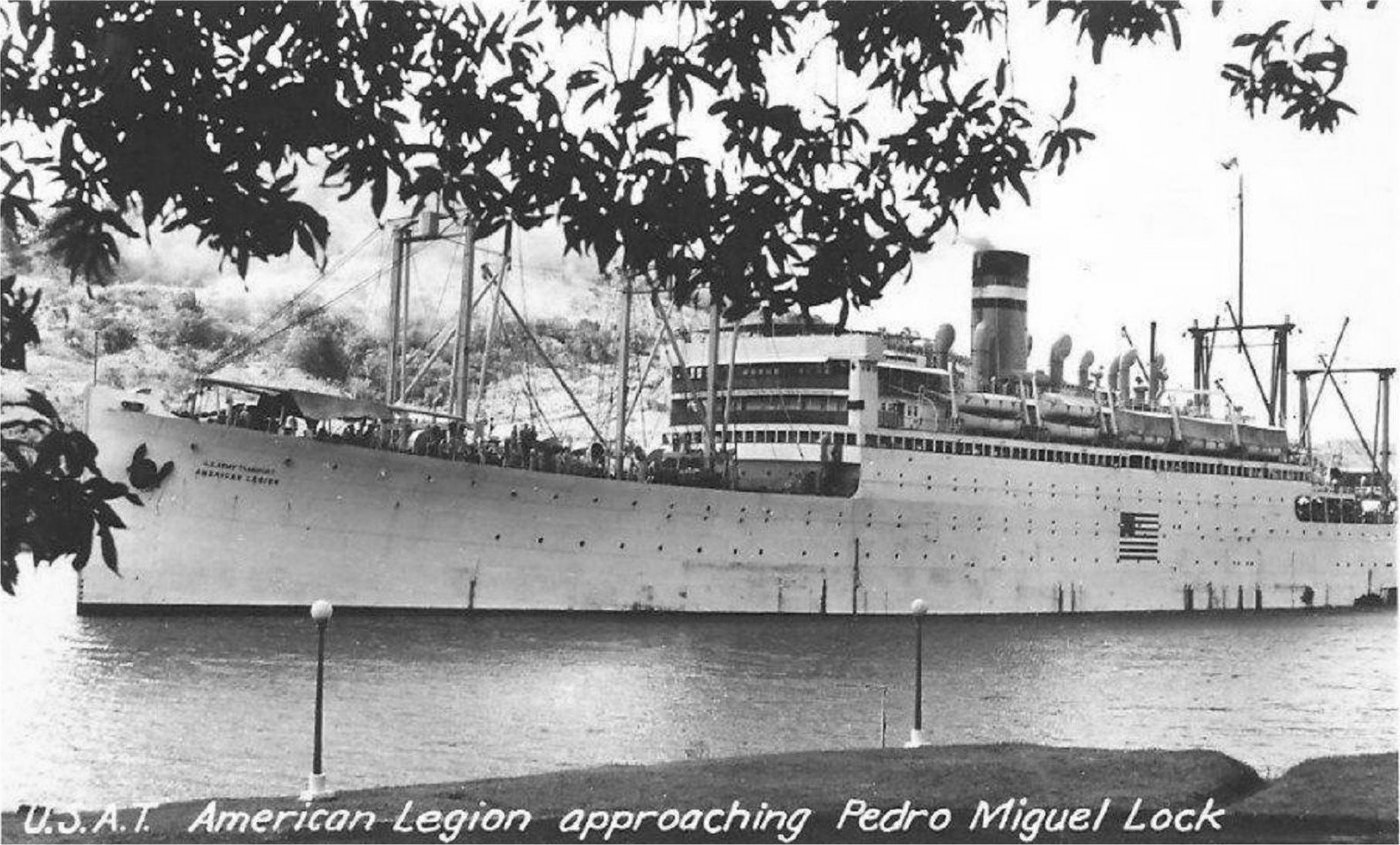311k | USAT American Legion underway in the Panama Canal, date unknown. | Tommy Trampp | |