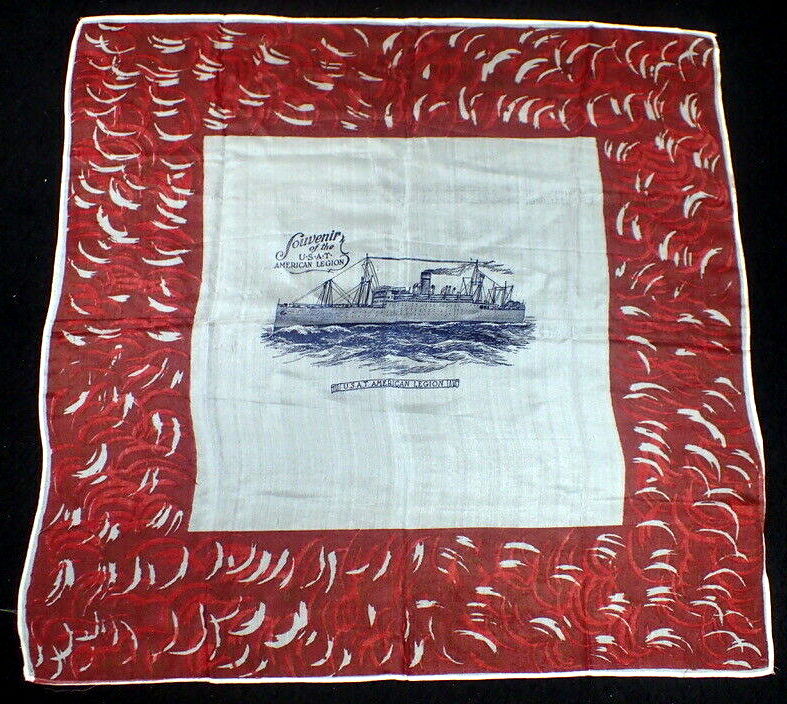 177k | USAT American Legion Souvenir Silk Headkerchief, circa 1939-1941, 16" x 16".