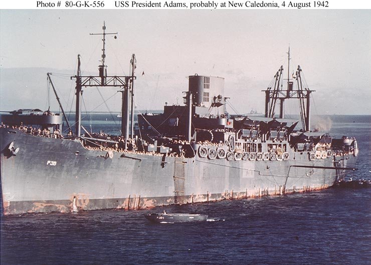 133k | USS President Adams (AP-38), during amphibious exercises off the California coast, 7 April 1942. US National Archive # 80-G-31836 , a US Navy photo now in the collections of the US National Archives |