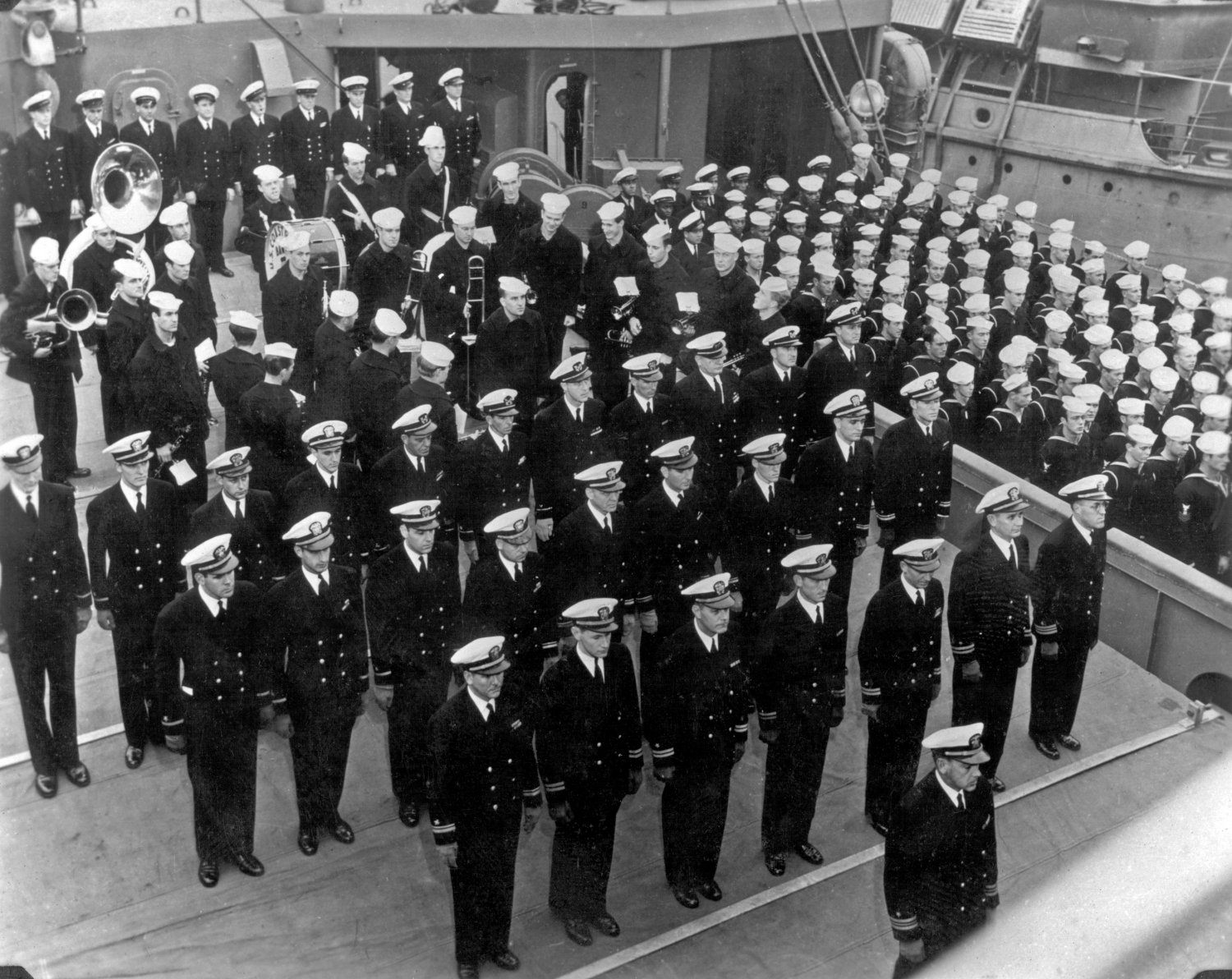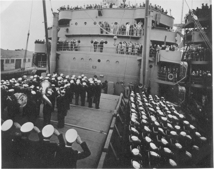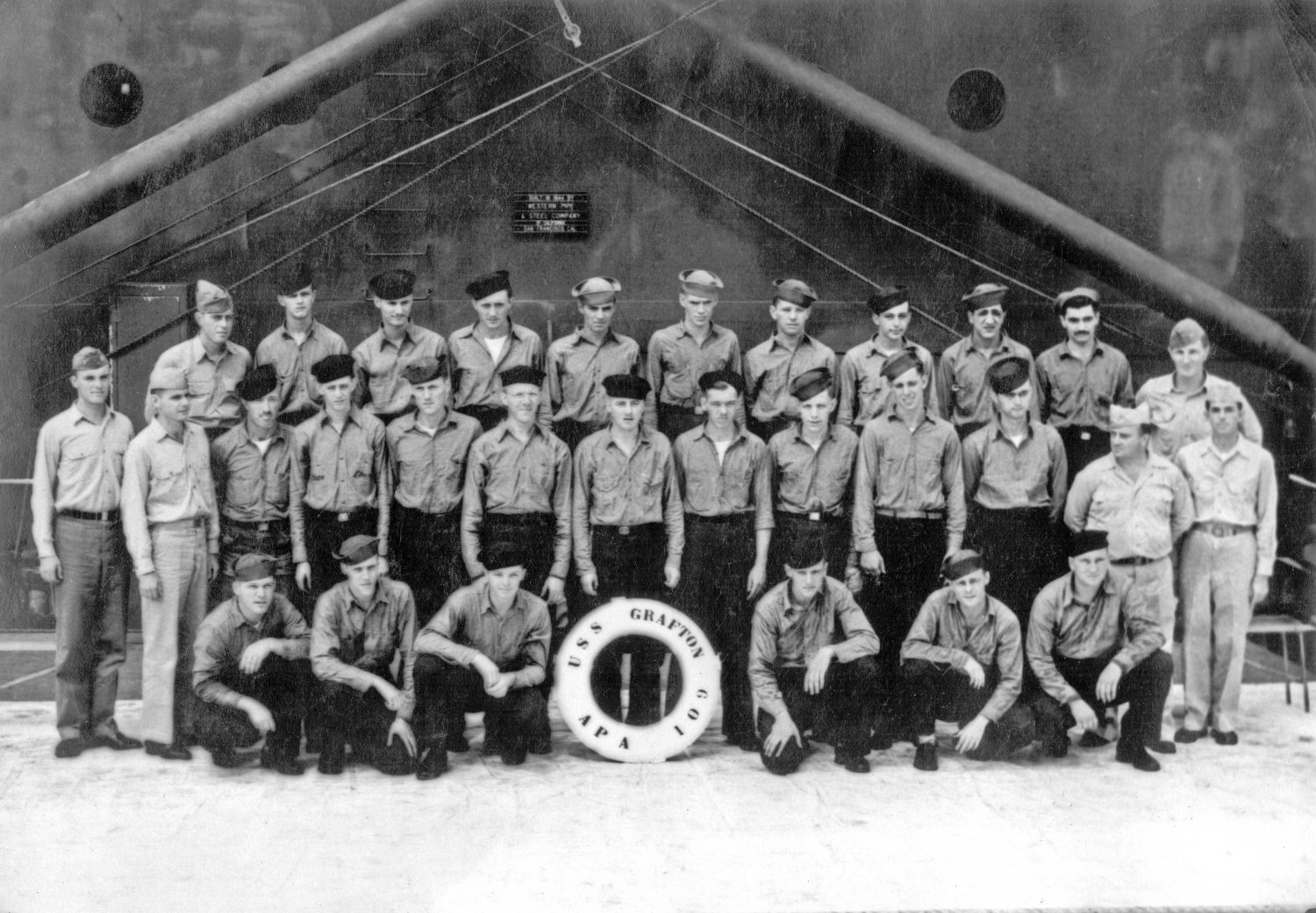 97k | USS Grafton (APA-109) commissioning ceremony, 5 January 1945, at Pier 27, San Francisco, CA. | Submitted by John Dupre' for his father-in-law CWO2 Edmund H. Cokely USN, Asst Electrical Officer USS Grafton. | |||||||||||