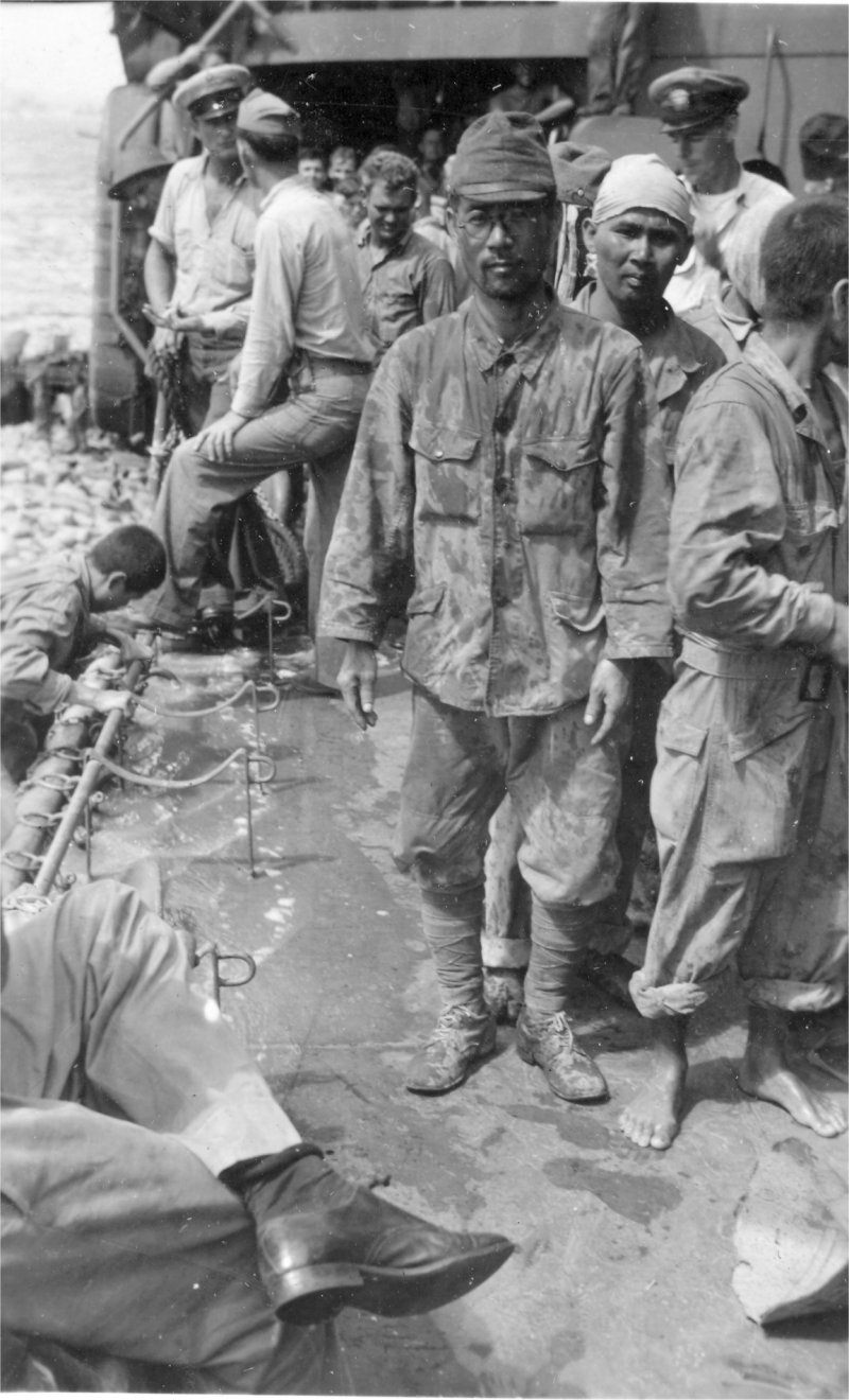 173k | USS Grafton (APA-109) with Japanese POWs on board. On 28 June 1945 at Okinawa Grafton loaded 1,000 Japanese POWs and transported them to Pearl Harbor via Tanapag Harbor, Saipan, Marianas Islands. | Submitted by John Dupre' for his father-in-law CWO-2 Edmund H. Cokely USN, Asst Electrical Officer USS Grafton. | |||||||||||