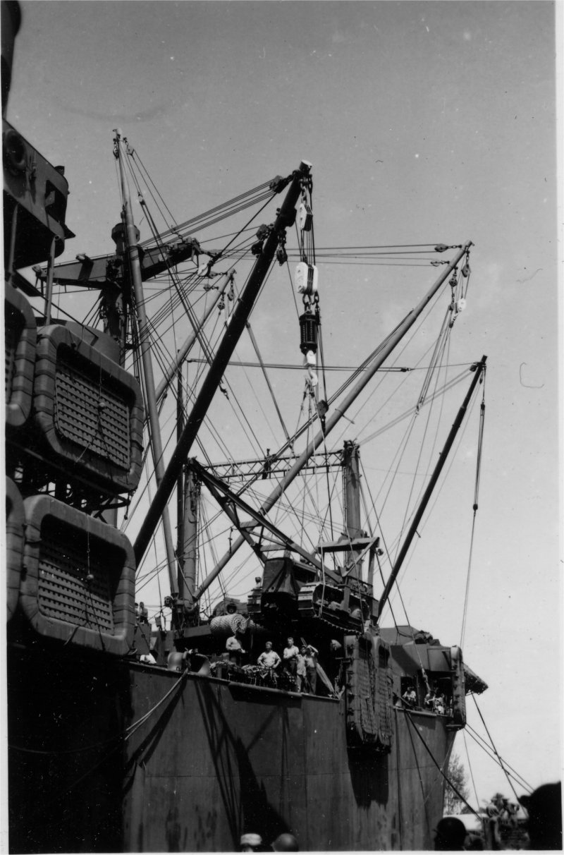 156k | USS Grafton (APA-109) loading a caterpillar tractor with a long A frame boom, date and location unknown. | Submitted by John Dupre' for his father-in-law CWO2 Edmund H. Cokely USN, Asst Electrical Officer USS Grafton | |||||||||||