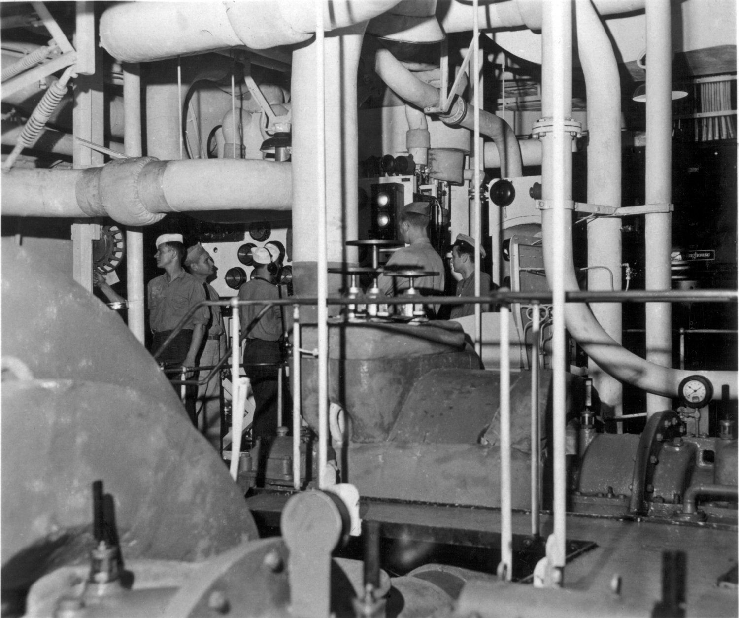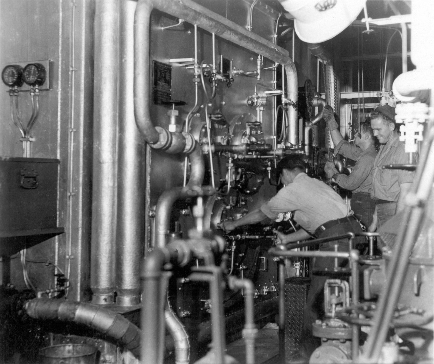 227k | USS Grafton (APA-109) engineering spaces, circa 1945-46. The officer in the engineroom photo is probably Ted de Vries. | Submitted by Dan Patterson for his father ENS. Dee Patterson USS Grafton | |||||||||||