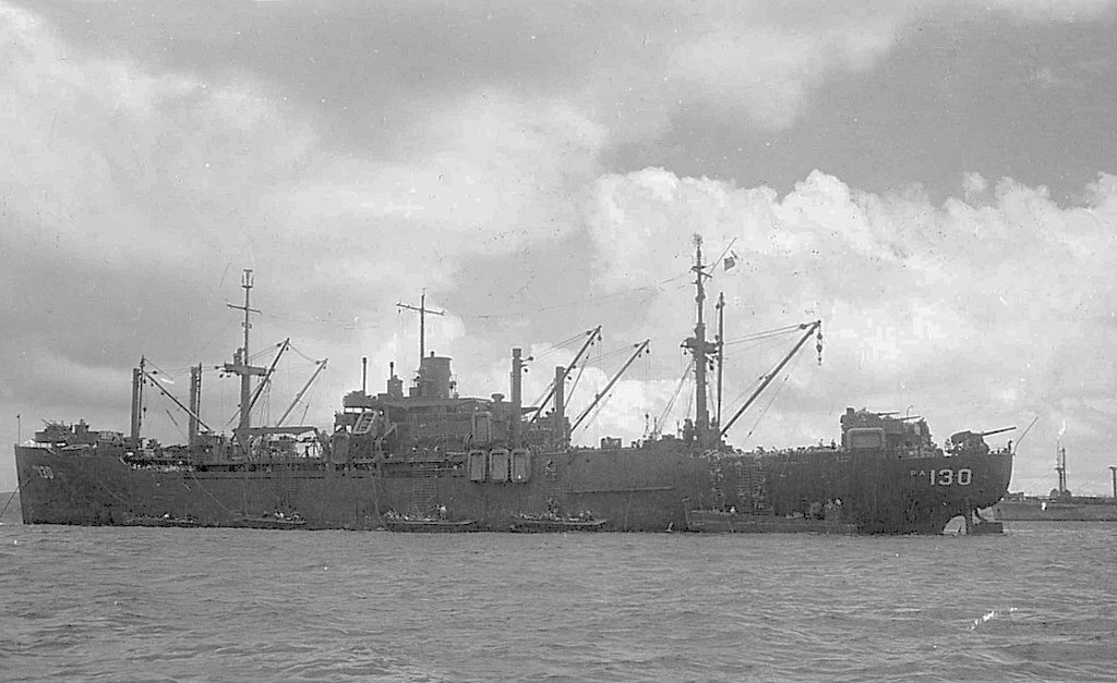 116k | USS Attala (APA-130) at anchor in in Hagushi Bay, Okinawa, 22 August 1945.