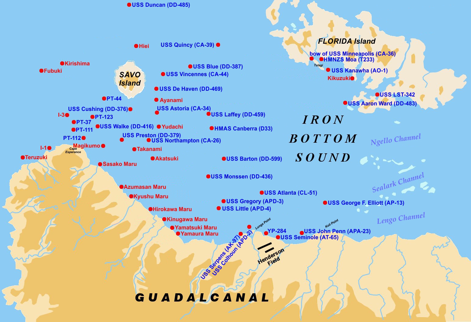 Location of the wreck of USS Gregory (APD-3) in Iron Bottom Sound