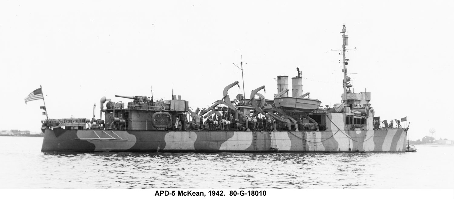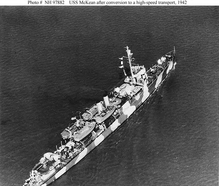 119k | USS McKean (APD-5) photographed circa early 1942. US Navy photo # NH 97782 from the collections of the uS Naval History and Heritage Command . |