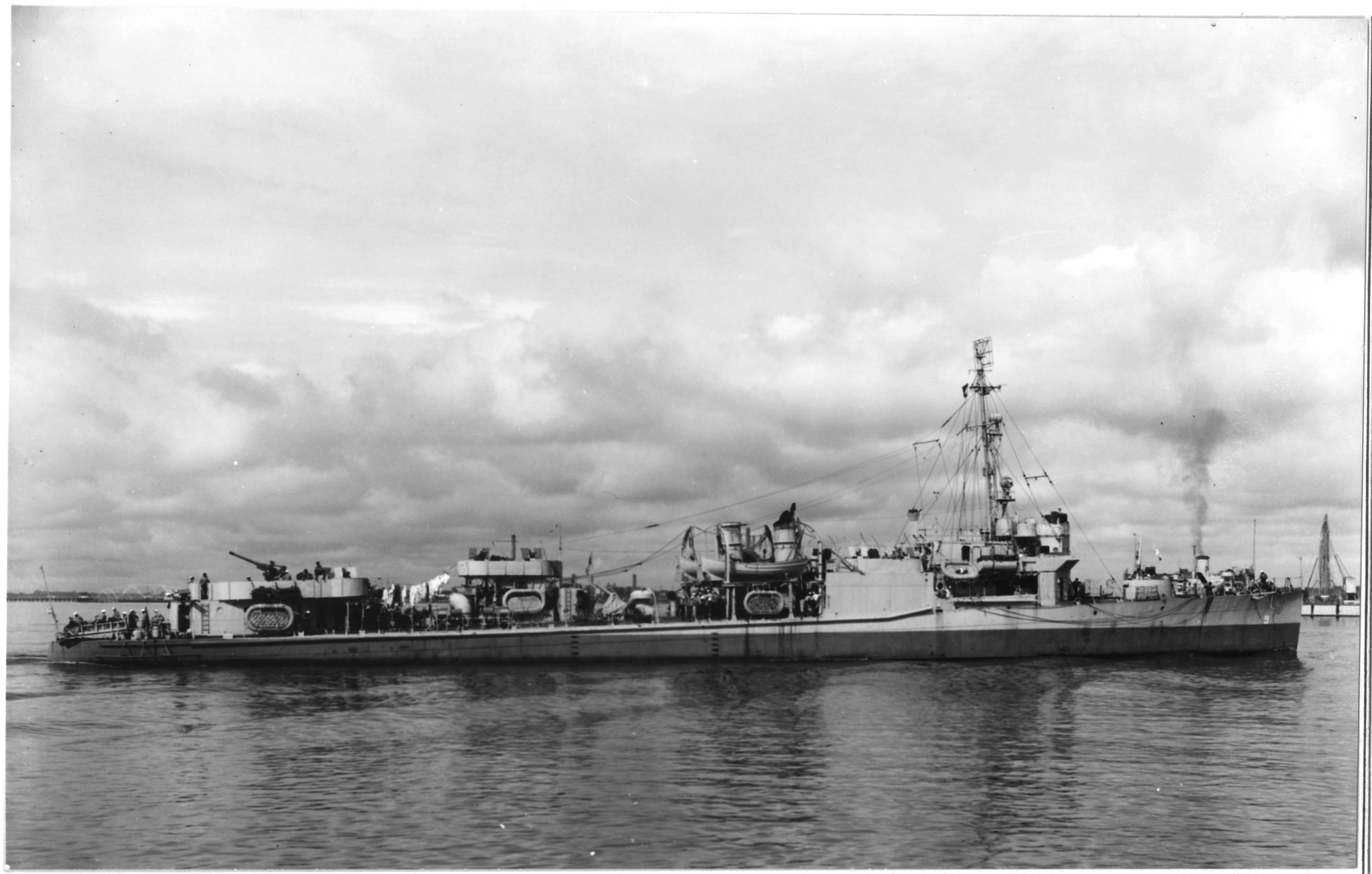 361k | USS Osmond Ingram (AVD-9) underway off Norfolk Navy Yard, Portsmouth, VA., 10 July 1943. US Naval History and Heritage Command photo # NH 42922. |
