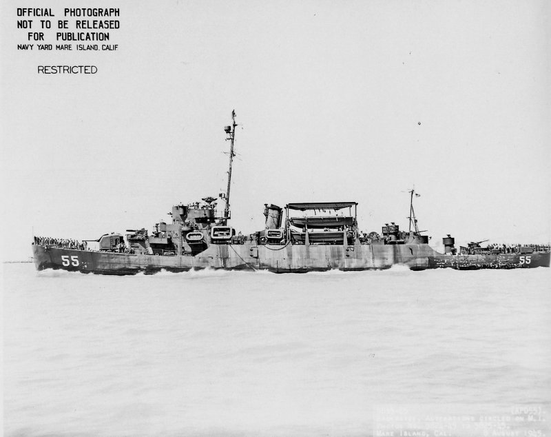 126k | USS Laning (APD-55) at Navy Yard Mare Island, 21 July 1945. Although Laning had completed her APD conversion at