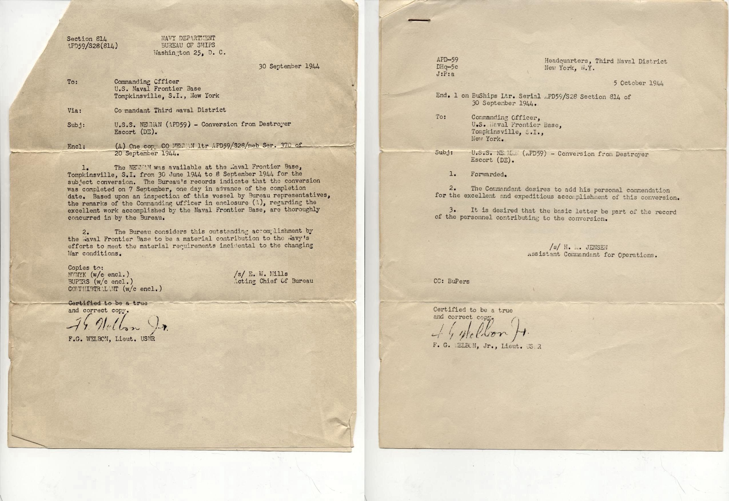 | 06 | ENS. Bouveron, Ernest Ambroise, USN (USNA 1946) | 1 April 1947 - 5 May 1947 | APD-59 |