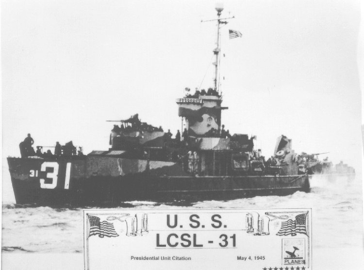 53k | USS LCS(L)(3)-31 underway, date and location unknown. | Michael Hollis for his father LTjg. Jack D.Hollis, USS LCS(L)(3)-31 and LCS(L) Group Seven staff, on behalf of Shelby Harbison, 1st LT. USS LCS(L)(3)-31. | |