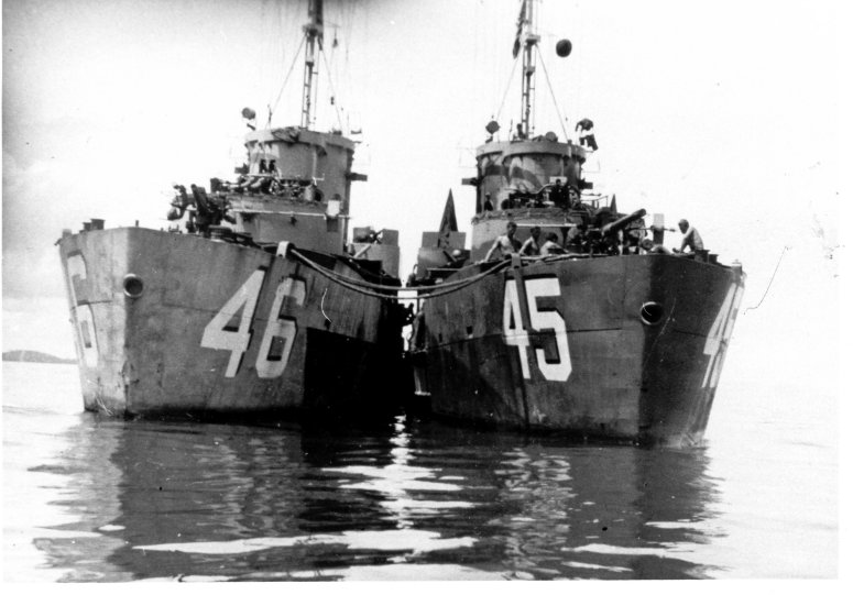 66k | USS LCS(L)(3)-46 and USS LCS(L)(3)-45 moored together, date and location unknown. | Henry W. Toll, Jr. MD and the National Association of USS LCS(L) 1-130 | |