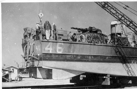 36k | USS LCS(L)(3)-46 being dry docked, date and location unknown. | Victor J. Blomberg, Courtesy Joan Haag | |