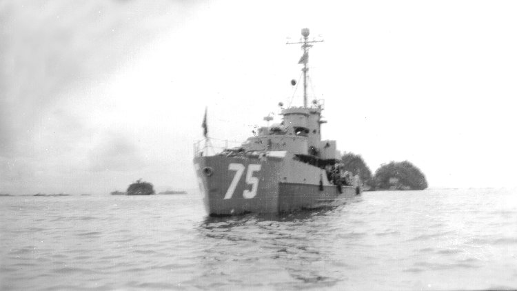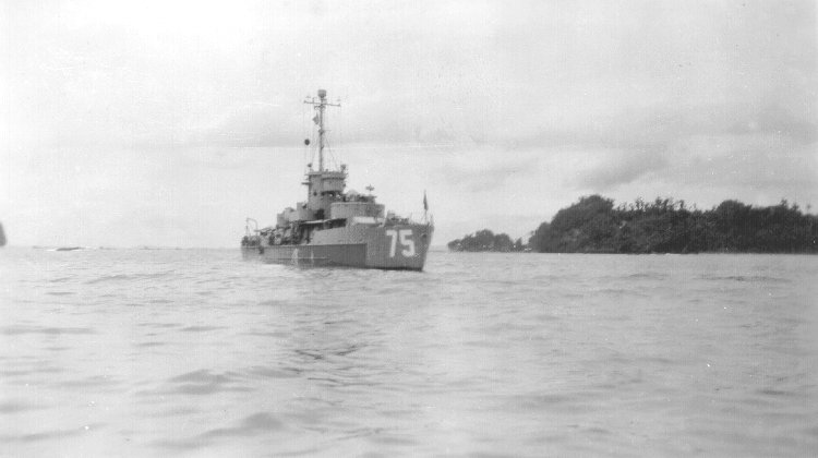 33k | LCS(L)(3)-75 at anchor, circa mid-1945, location unknown. | National Association of USS LCS(L) 1-130 James J White |