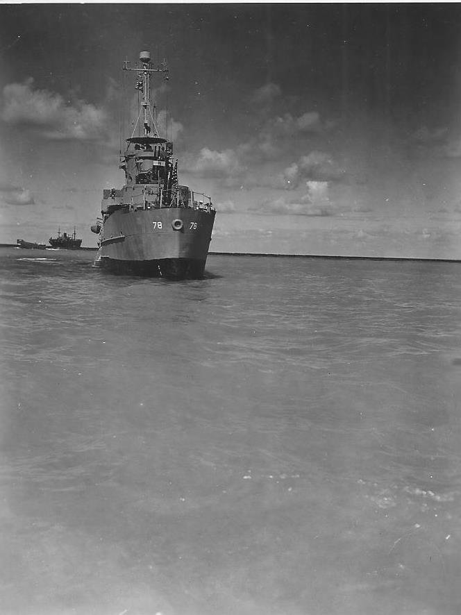 71k | USS LCS(L)(3)-78 laying at anchor, probably at Okinawa, circa November 1945. | Photo from the collection of Bill Albright, USS LCS(L)-78 plankowner. | |