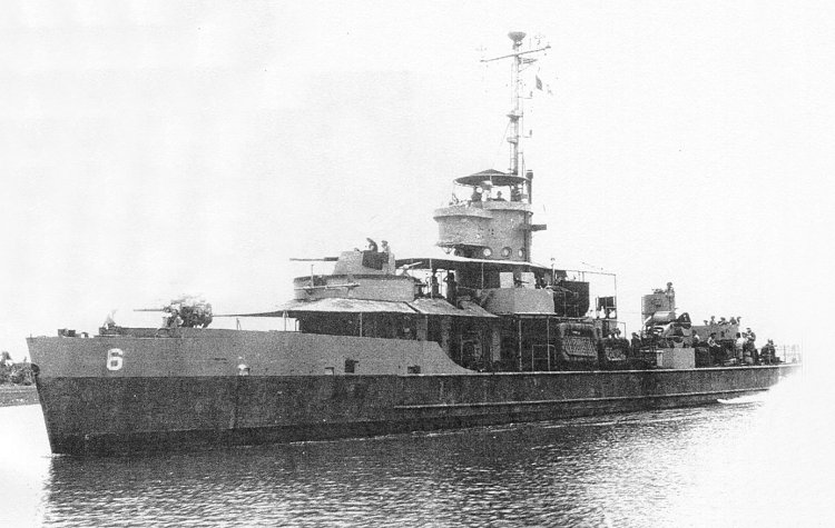 Ex-LSSL)-80 in Republic of France service as RFS La Rapière (LSSL-6) underway, probably on the Red River, North Vietnam, during French Indo-China War, circa 1953. |
