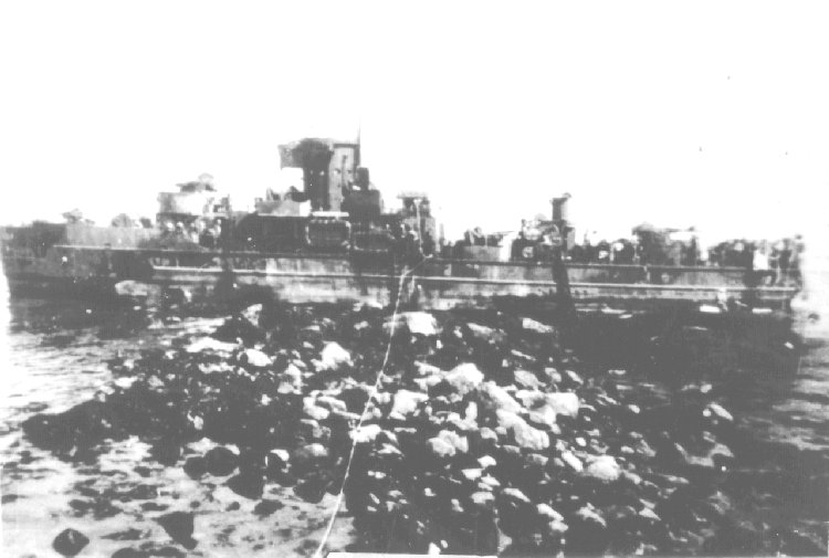 USS LCS(L)(3)-127 hard aground in March 1945 on rocks off San Clemente Island CA. |