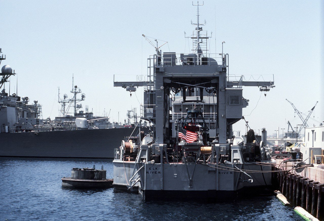 70k | Elk River (IX-501) moored pierside at Naval Station San Diego in March 1997. Photo by CWO3 Al Tarantino, USN (Ret.) |