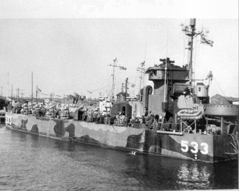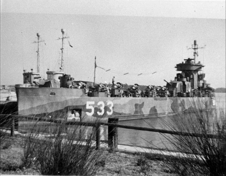 80k | USS LSM(R)-533 moored pierside, date and location unknown. | USS LSM / LSMR Association | |