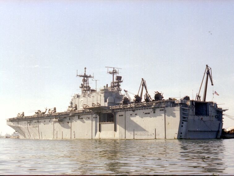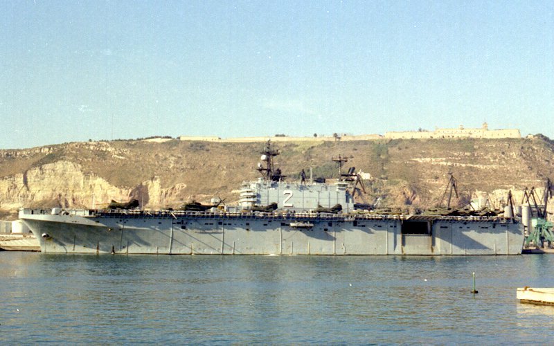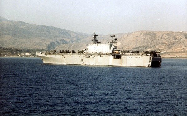 60k | USS Saipan (LHA-2) at anchor off the coast of Turkey, 1982 | Pete Harlem, Courtesy Mario Mederos USMC HMM-263 | |