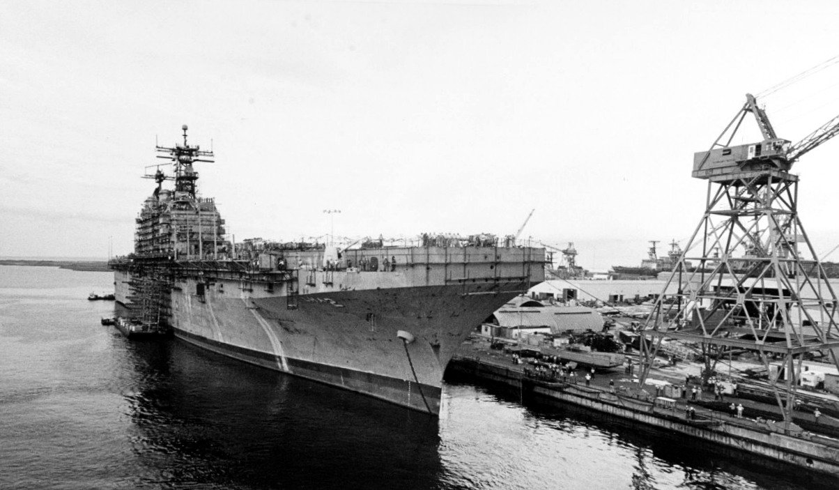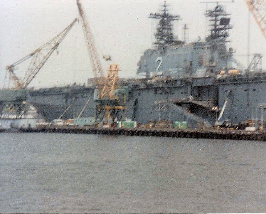 147k | USS Saipan (LHA-2) at Naval Shipyard Philadelphia, June 1988. | Photo by Gary Schurr | |