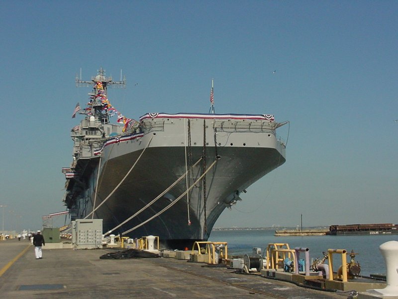 80k | USS Saipan (LHA 2) returns to her homeport at Norfolk, VA., 25 August 2005. Navy photo # 050825-N-3541A-004. |