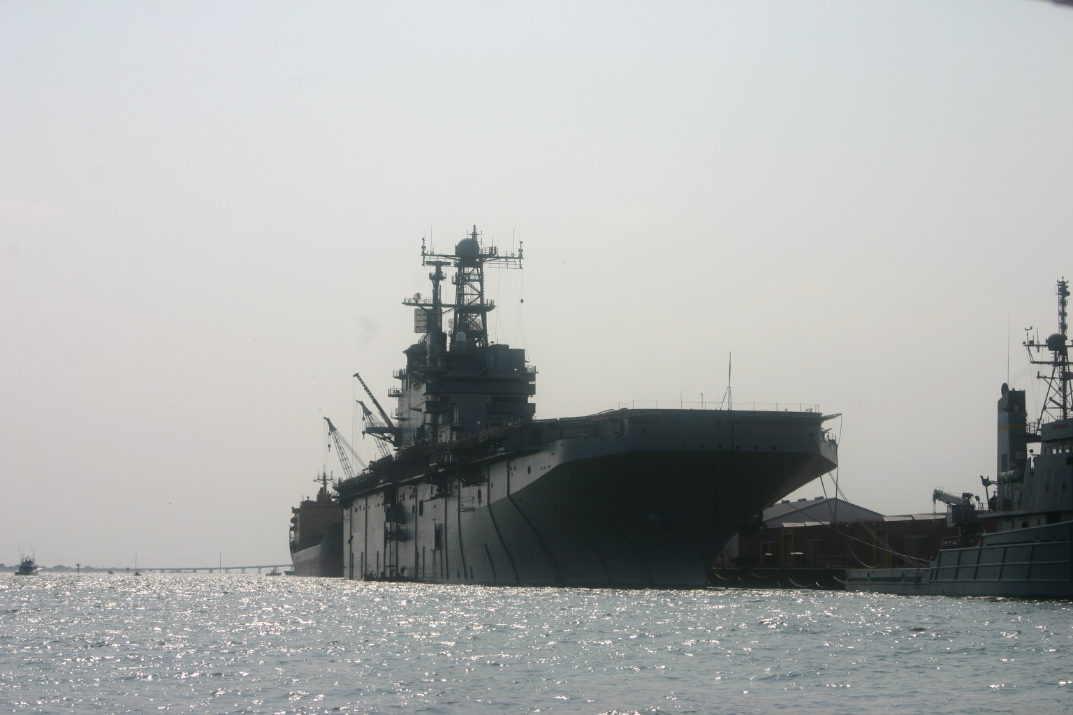 202k | Decommissioned USS Saipan (LHA-2) moored pierside at Philadelphia Naval SHipyard, 19 January 2008. | Robert M. Cieri | |