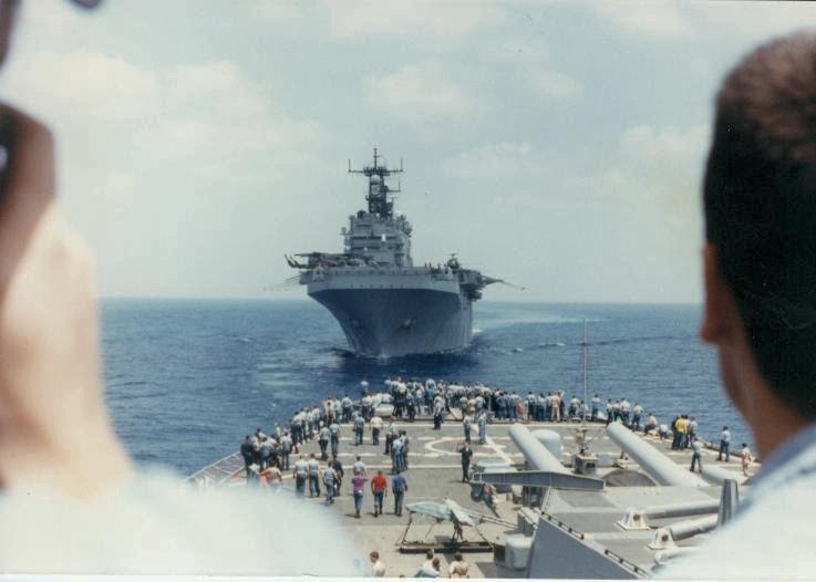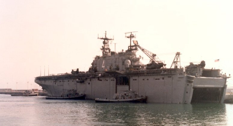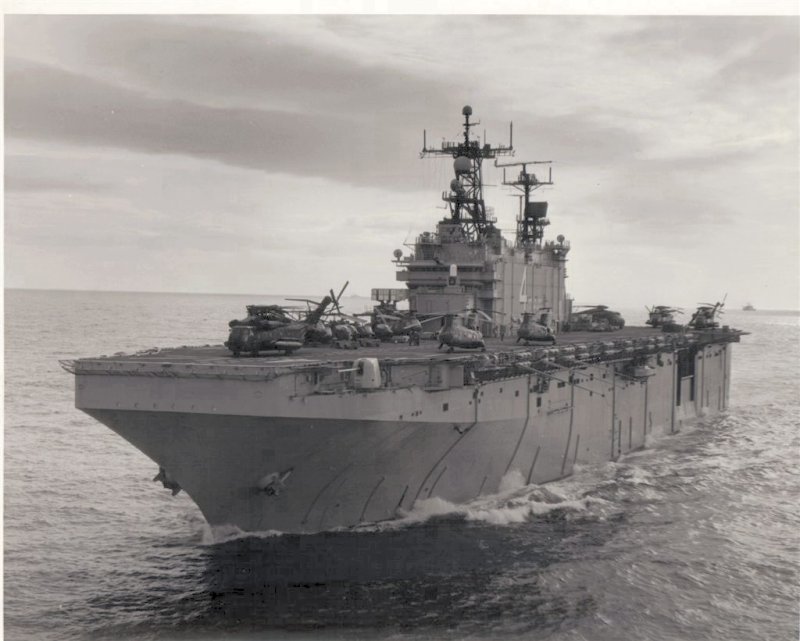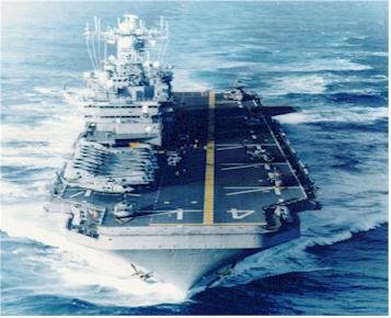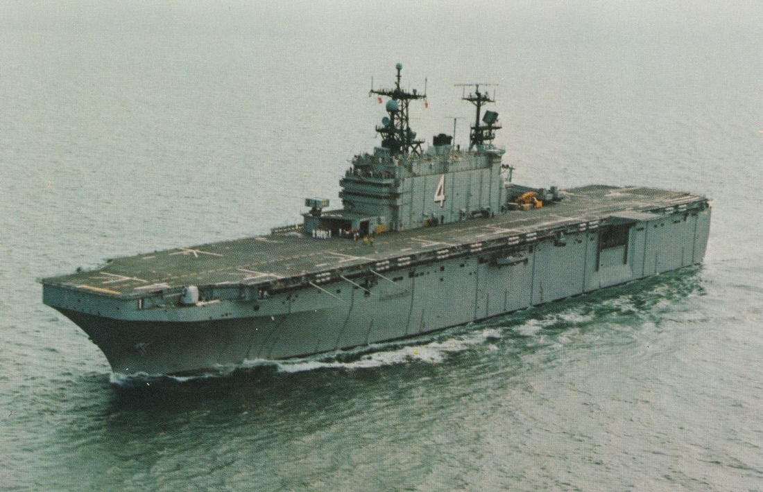51k | USS Nassau (LHA-4) underway in the Mediterranean Sea. Photo by Mario Mederos, crew chief Marine Medium Helicopter Squadron (HMM-263) was taken during the Blue Eagles cruise to the Mediterranean in 1983. | Pete Harlem | |