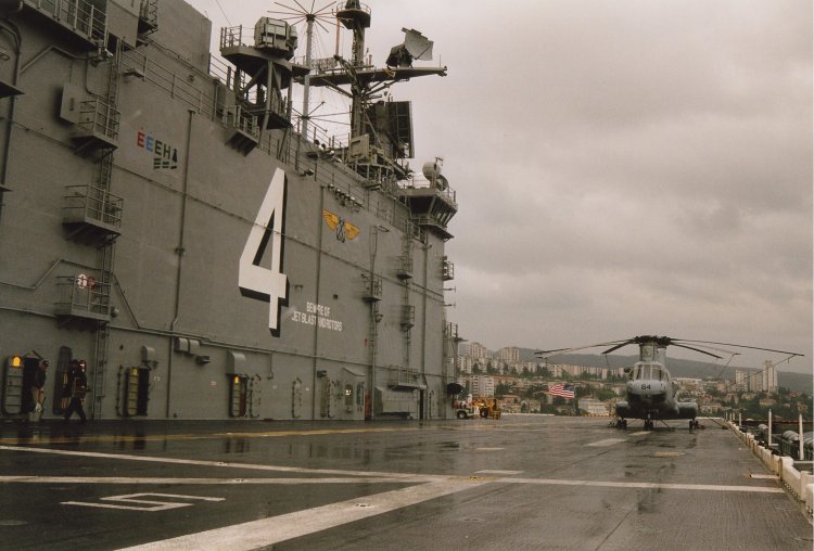 71k | USS Nassau (LHA-4), flight deck view, in port, Rijeka, Croatia, 16 April 2001. | Photo by Frank Egger - Lienz/Austria | |