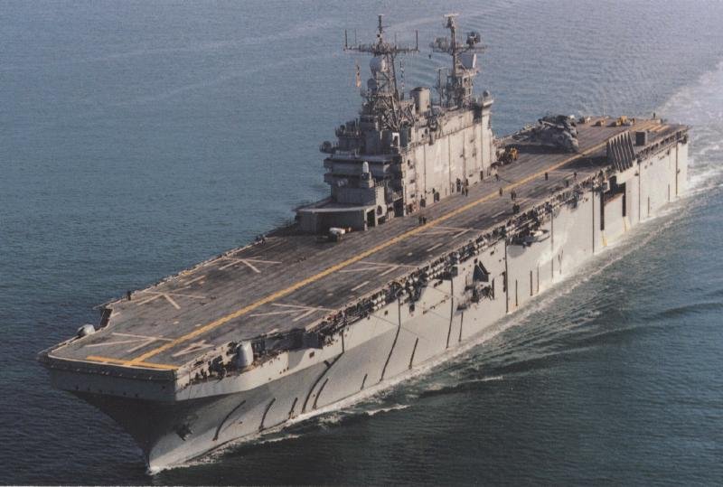 179k | USS Nassau (LHA-4) underway, June 2001, location unknown. US Navy photo. |