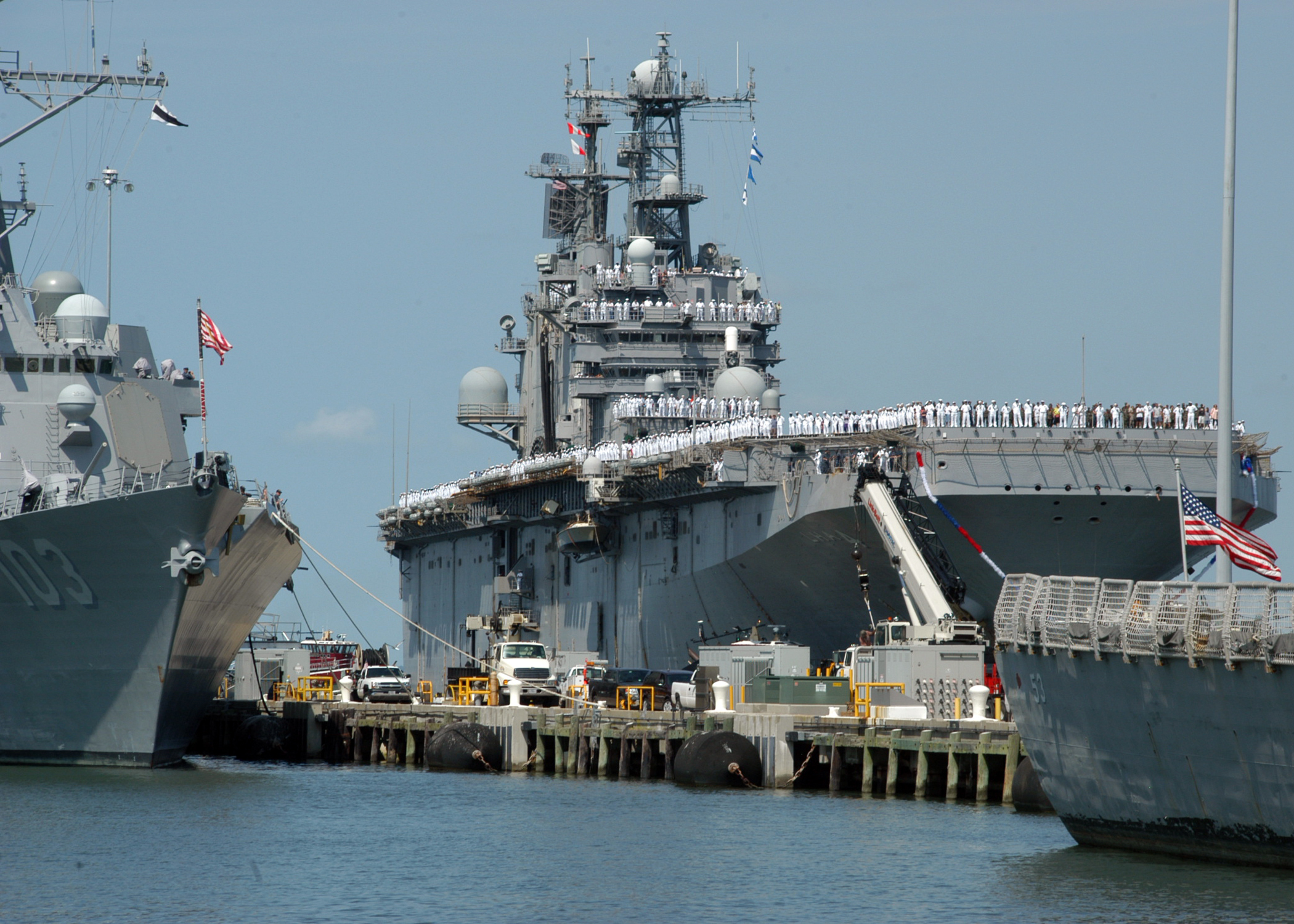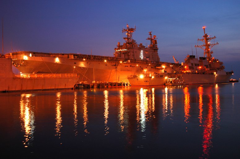 54k | USS Nassau (LHA-4) returning to her homeport of Norfolk, VA. from a deployment, 4 May 2006 | Joseph A. Gless SK1(SW), USS Nassau | |