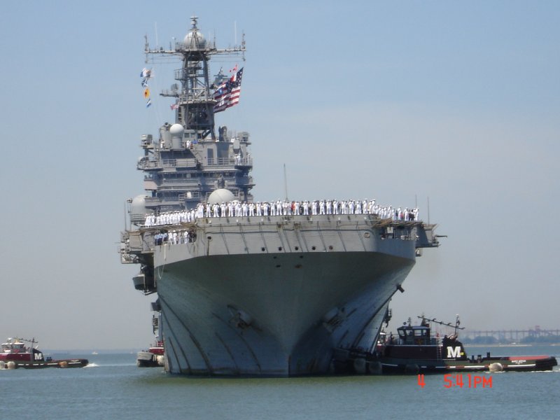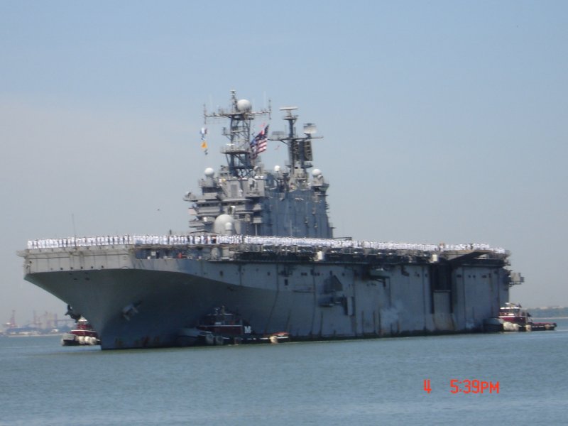47k | USS Nassau (LHA-4) returning to her homeport of Norfolk, VA. from a deployment, 4 May 2006 | Joseph A. Gless SK1(SW), USS Nassau | |