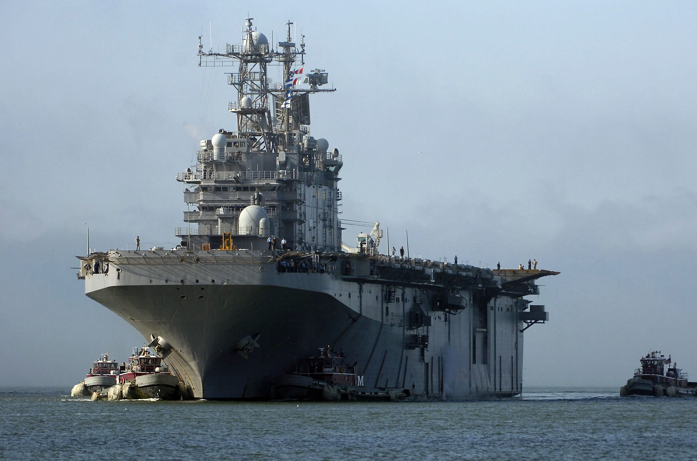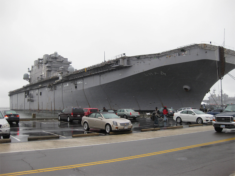 57k | USS Nassau (LHA-4) underway in Hampton Roads, February 2005. | Danny Lewis | |