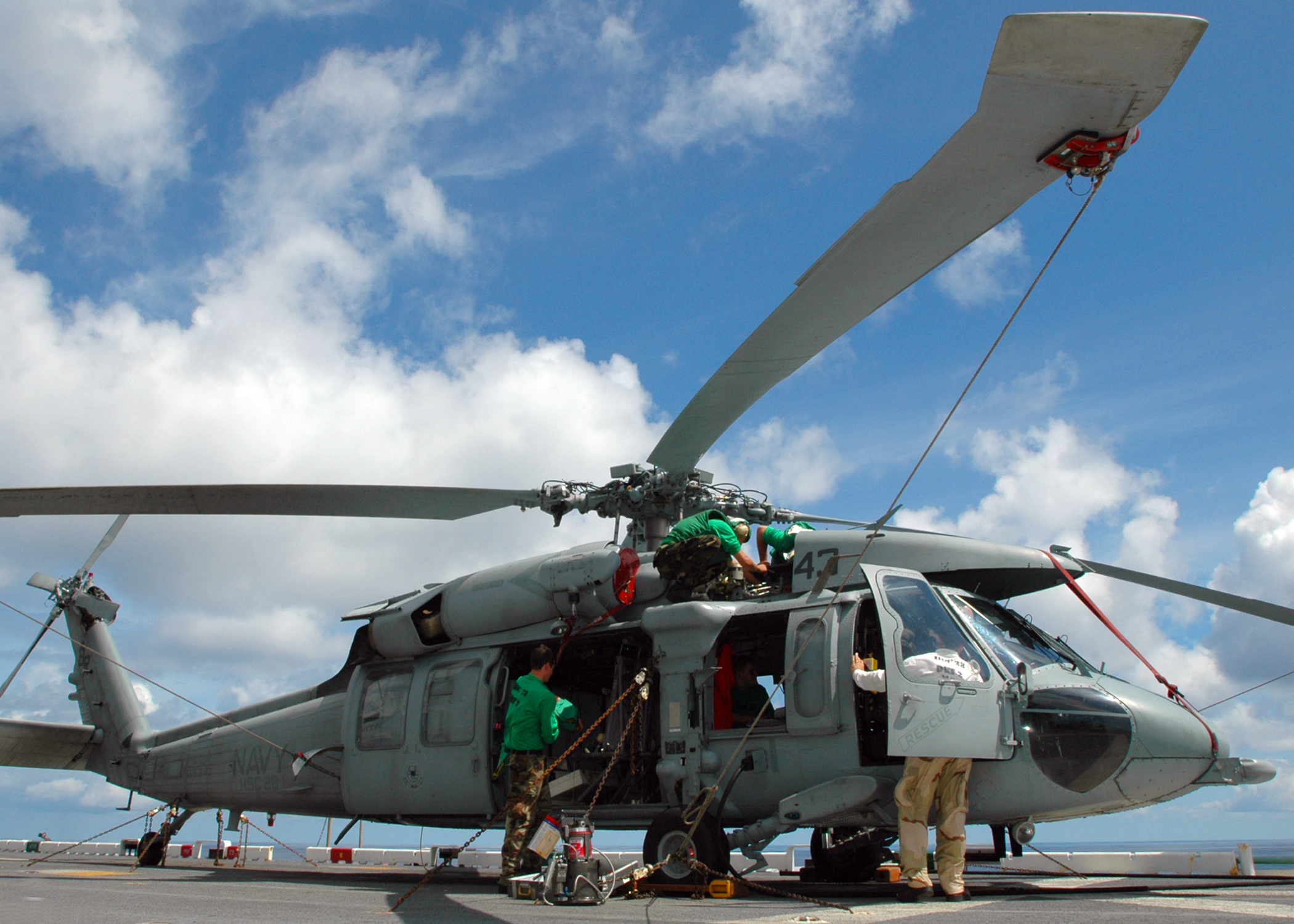 1990k | Sailors assigned to the "Dragon Whales" of Helicopter Combat Support Squadron (HSC-28) troubleshoot a transfer module problem on the flight control system of an MH-60S Sea Hawk helicopter aboard USS Nassau (LHA-4) Nassau is underway to provide assistance to civilian authorities, if called upon, in the wake of Hurricane Ike. US Navy photo # 080913-N-8132M-002 Atlantic Ocean (Sept. 13, 2008) by MC3 Kiona M. Mckissack. |
