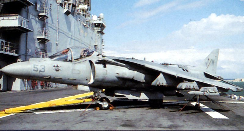 70k | USMC AV-8B + Harrier 11 '53' om the flight deck of USS Nassau (LHA-4) early 1997, location unknown. | Robert Hurst | |