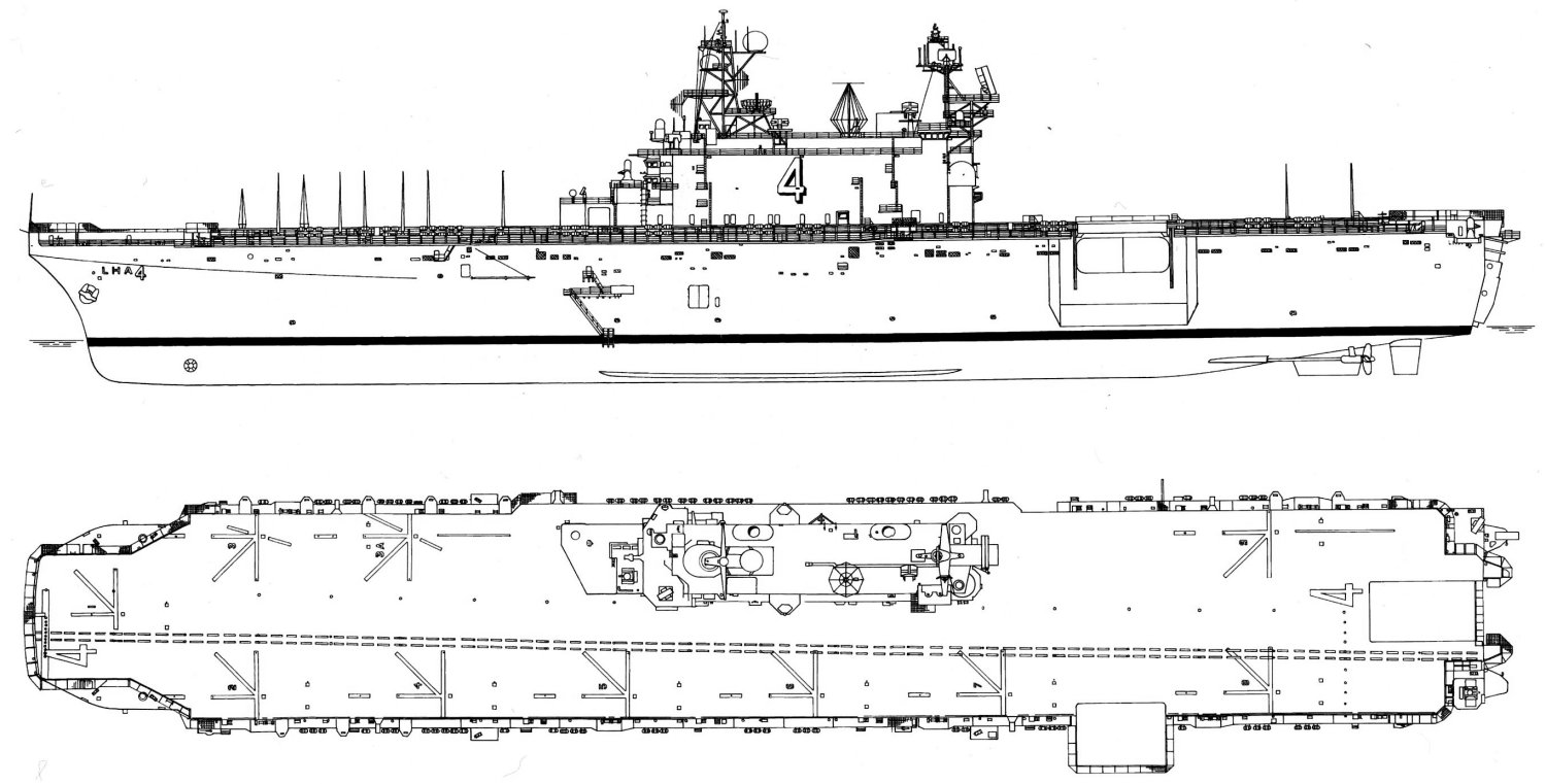 46k | USS Nassau (LHA-4) inboard profile. Illustration from "U.S. Amphibious Ships and Craft: An Illustrated Design History" by Norman Freidman. |