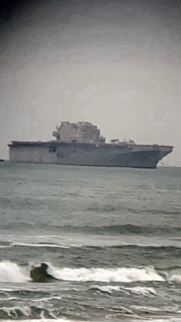31k | Ex-USS Nassau (LHA-4) under tow to the SteelCoast Co. in Brownsville, TX. for recycling, 30 April 2021. | Photo by James Taney | |