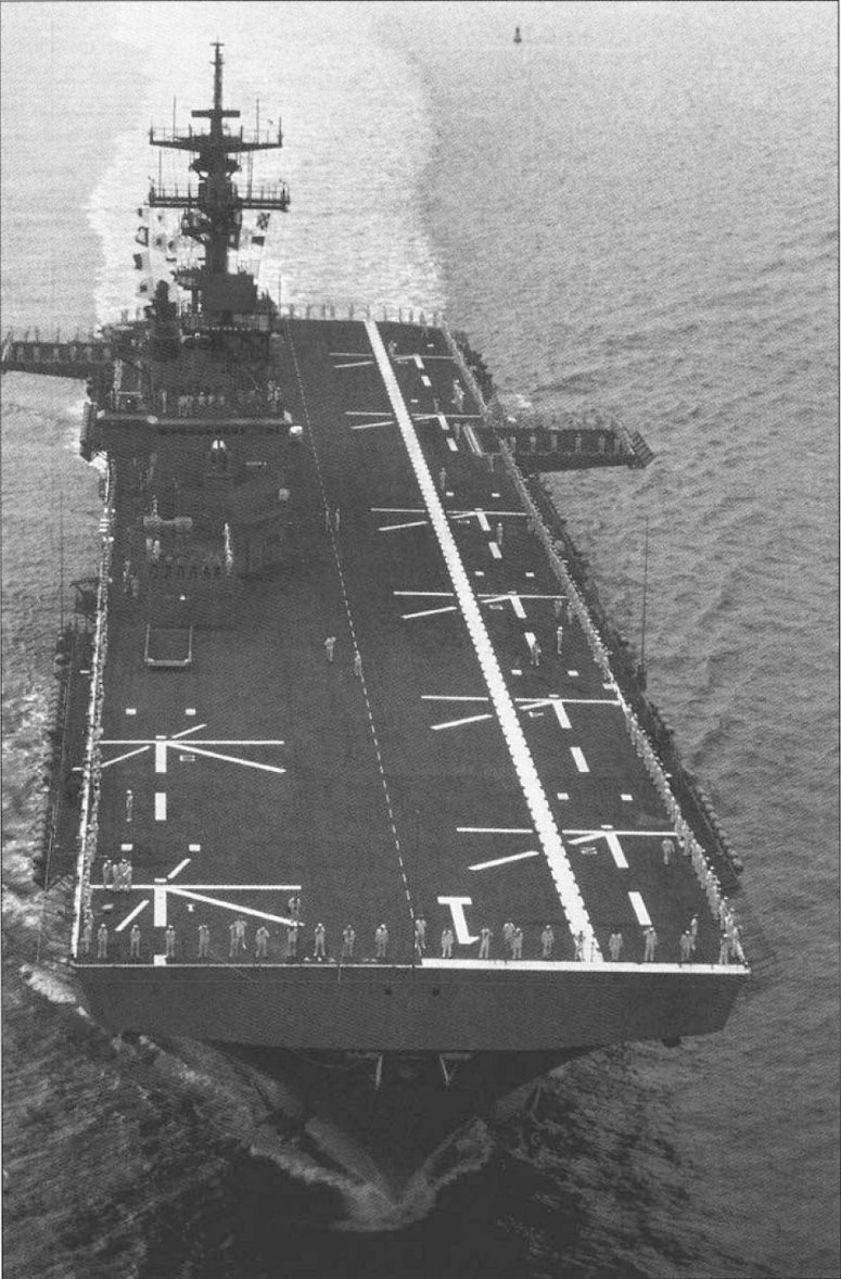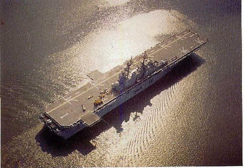 72k | USS Wasp (LHD-1) under way, date and location unknown. US Navy photo from "All Hands" magazine, August 1989, Courtesy Ingalls Shipbuilding Corp. |