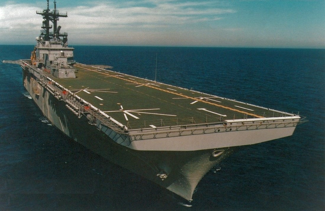 45k | USS Wasp (LHD-1) under way, date and location unknown. US Navy photo |